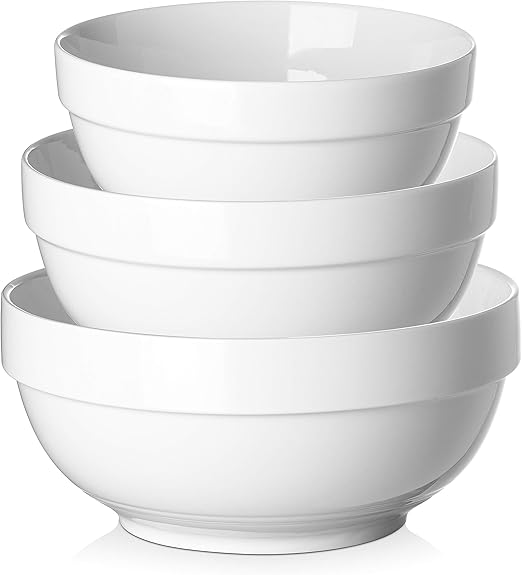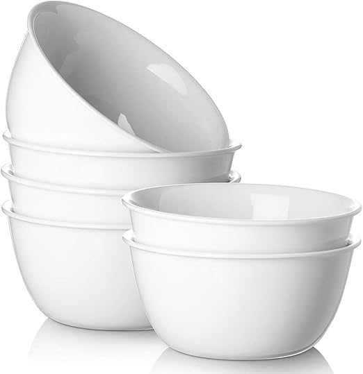 Dowan porcelain bowls the alternative option for your health. These are the medium sized bowls and hold up to 20 ounce. There are 4 ceramic bowls in the set. Dinnerware made in usa.